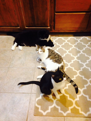This final photo is all three of them waiting on me to give them their food bowls. If you were to ask them what I could do to improve, they would probably prefer their meal quicker.