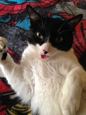 In honor our National Cat Day I wanted to share a few pictures of my furry feline family. My hubby and I have no human children, but we love our kitties!!! They make life interesting. I'm starting this post with a photo found online of an irritated kitten with the perfect caption for the photo and my life. I will never profess to being a morning person.