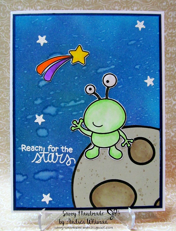 Space Art Digital Stamps for the design team to create our examples. I seem to be the oddball this week, but that's really "normal" for me. I used the alien, moon and shooting star to create this