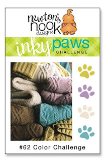 This More than Naps Card was inspired by the current Inky Paws Color Challenge #62 (see photo below). I love the combination of colors and the cable knit sweaters. So, I knew I had to use the cable knit embossing folder by Stampin' Up!. Surprisingly... there is NO patterned paper on this card. Copic markers were used to color the Newton's Naptime image and then it was die cut using a cross-stitched oval die by My Favorite Things. Circle punches were used to cut out the sentiment and some Very Vanilla twine from Stampin' Up! adds the final detail. That's it! Thanks for stopping by and have a happy and safe New Year's Eve.